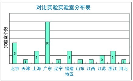 共有31家實(shí)驗(yàn)室參加了本次比對(duì)試驗(yàn),從下圖中可以看出北京、上海、廣東、福建以及浙江的實(shí)驗(yàn)室數(shù)量較多,符合目前RoHS檢測(cè)領(lǐng)域較活躍的區(qū)域分布。