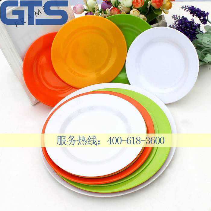 是以三聚氰胺—甲醛樹脂為基材,以纖維素為填料的密胺模塑粉為原料,加入顏料及其他助劑,經(jīng)模壓成型制得的密胺塑料餐具,產(chǎn)品形態(tài)可包括碗、盤、杯、壺、勺、筷、托盤、分格盤(餐盤)、快餐盒、湯盅、味碟、雙耳煲等。按顏色分有單色、雙色及貼花。
