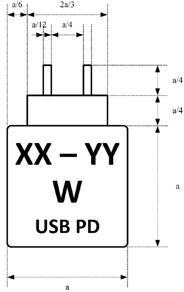 4.外包裝或標(biāo)牌中需要體現(xiàn)充電器的類型和配置情況,信息要以可讀可見的方式顯示,其中a應(yīng)該不小于7mm,如下圖: