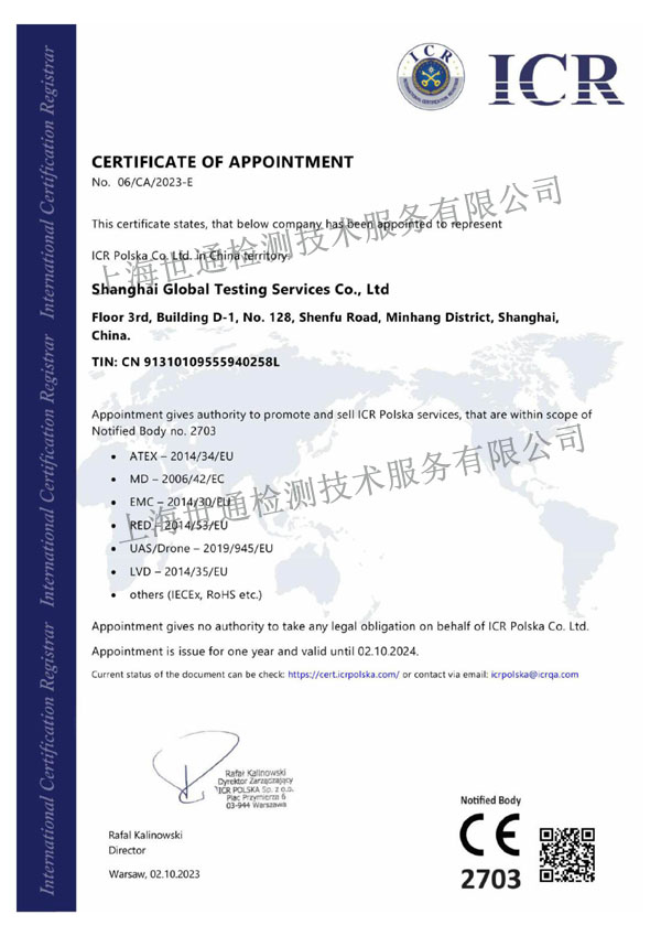 歐盟NB機構(gòu)2703 授權(quán)書